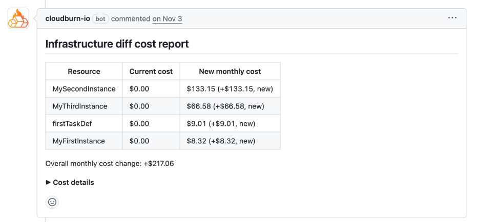 CloudBurn is for teams using Terraform or AWS CDK who want to prevent expensive infrastructure mistakes before they reach production. Most teams discover AWS cost problems weeks later on their bill, after the infrastructure is already running and the money is spent. CloudBurn changes this by showing AWS costs during code review, when changes are easy to make. Here's how it works: 1. A developer opens a pull request with infrastructure changes (Terraform or AWS CDK). 2. CloudBurn automatically analyzes the changes using real-time AWS pricing. 3. A cost report appears in your PR, showing exactly what each change will cost per month. 4. Your team discusses costs during code review and adjusts before deployment. What you get: - Automatic cost analysis on every infrastructure PR - Real-time AWS pricing for your specific region - Resource-level breakdown showing old vs. new monthly costs Stop optimizing reactively. Catch costly decisions during code review when they're easy to fix.